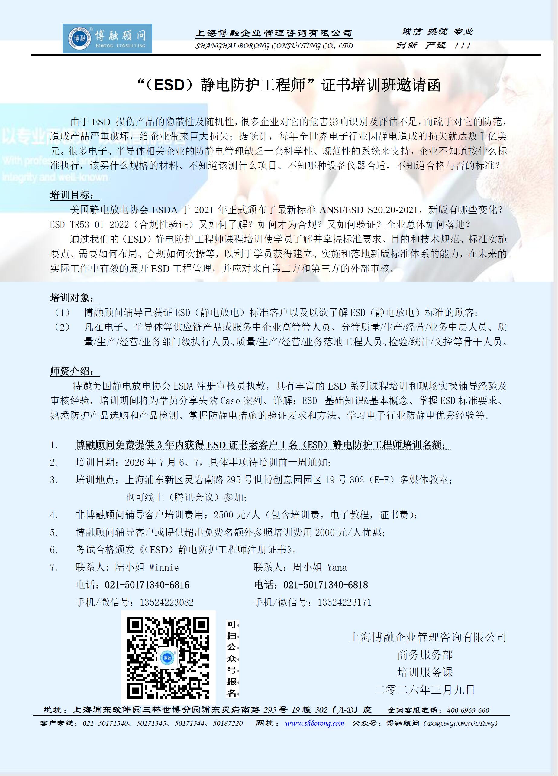 (ESD)静电防护工程师培训邀请函