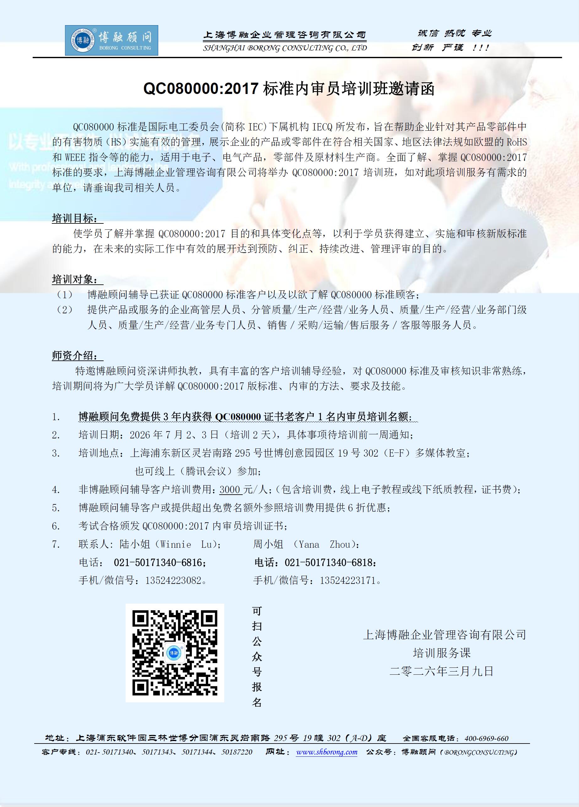 QC080000:2017标准内审员培训班邀请函