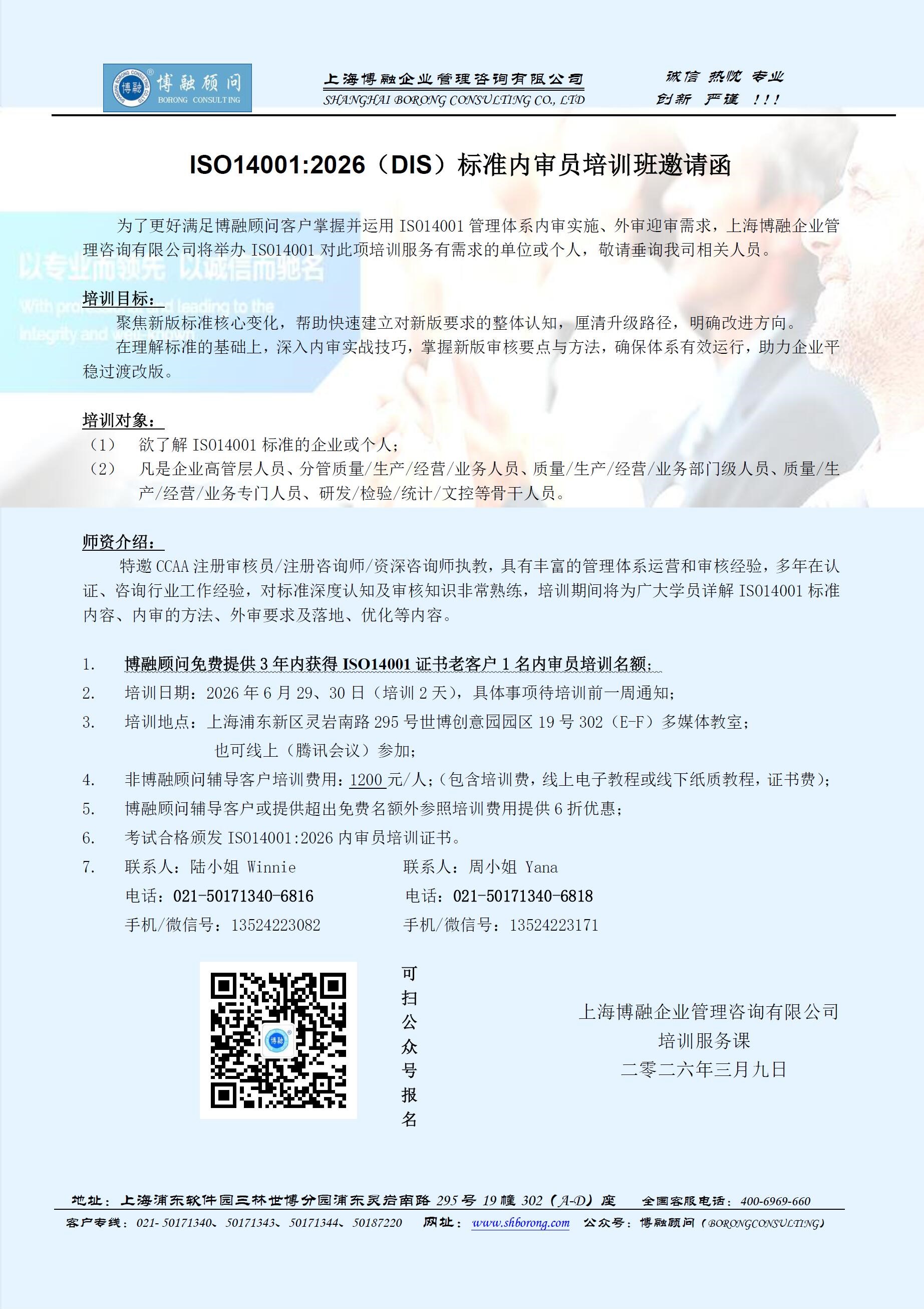 ISO14001:2026(DIS)标准内审员培训班邀请函