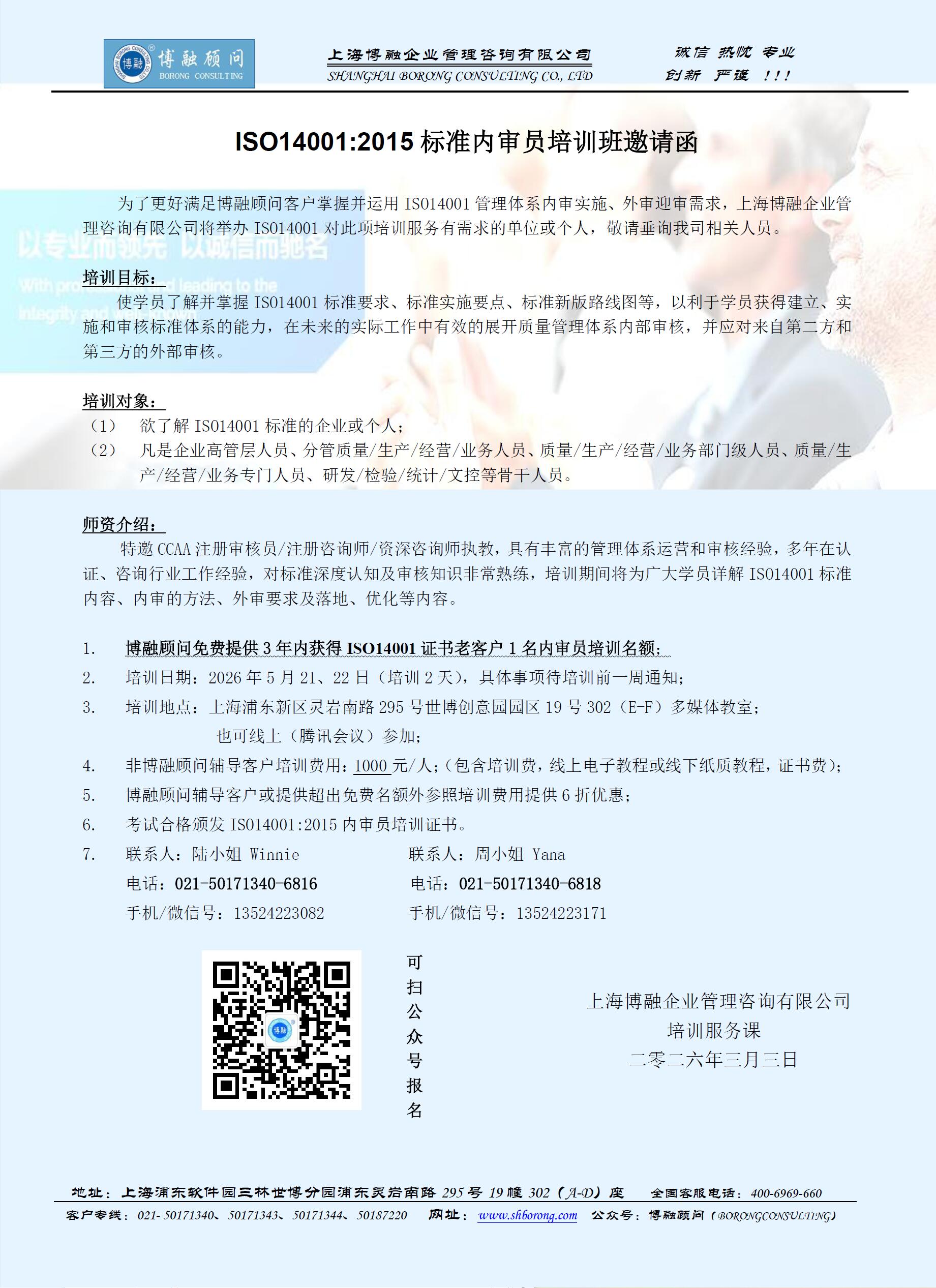 ISO14001:2015标准内审员培训班邀请函